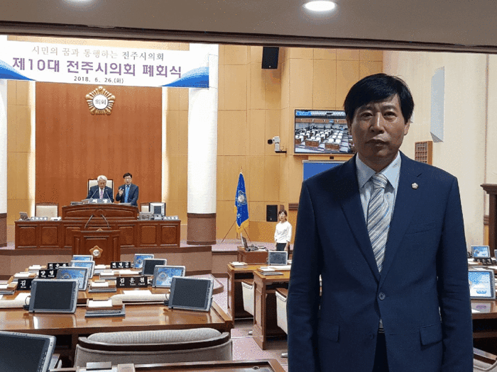 ▲ 26일 전주시의회 마지막에 참석한 남관우 의원 ©이영노